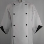 Dólmã Chef branca com detalhes e botões brancos, manga curta.